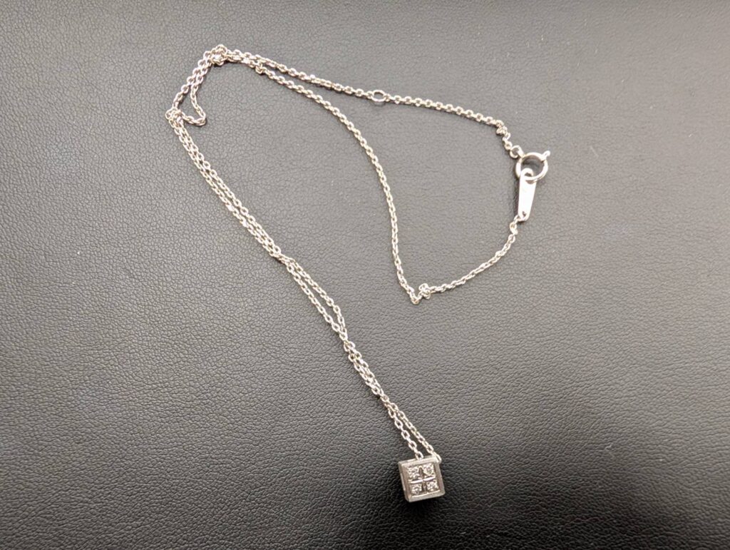 こちらのお品物ですが、プラチナで出来ておりダイヤもトップにあしらわれたお品物となります!