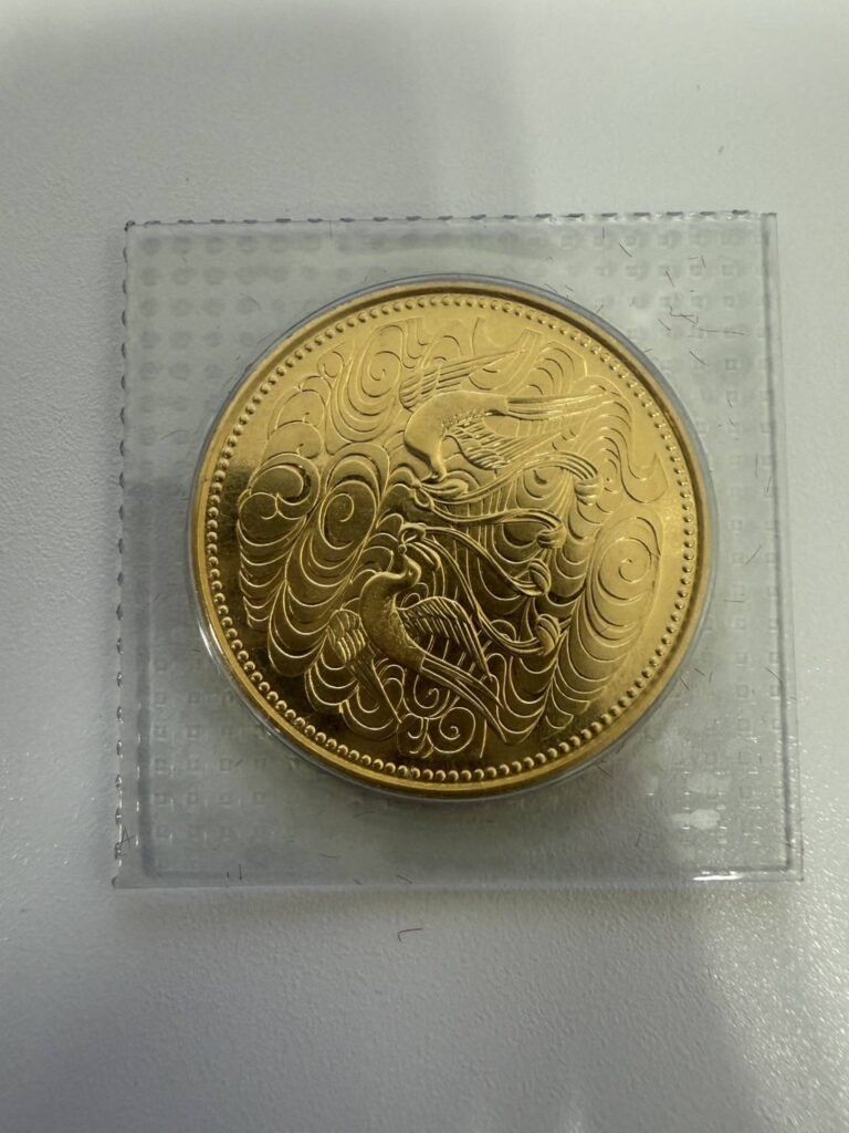 こちらのお品物ですが、御在位10万円金貨と呼ばれ昭和天皇陛下御在位60年を記念して発行された金貨です(^^♪