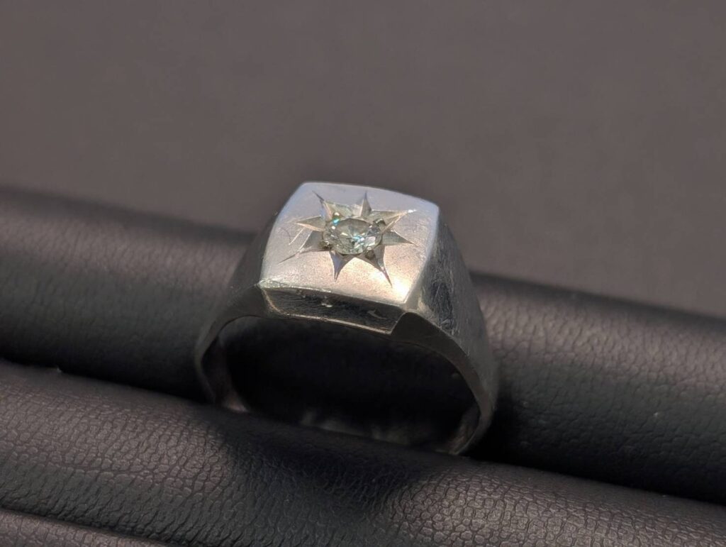 こちらのお品物ですが、印台リングとなっており中央にはきれいなダイヤが埋め込まれているとても豪華なお品物となっております(^^♪